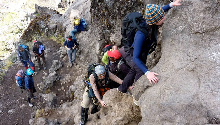 Although this up and down day ends with an elevation gain of only 110 meters, by early afternoon you will have climbed 690 meters to a height of 4,530 meters before beginning your descent to Barranco Camp. This day is crucial for acclimatization.